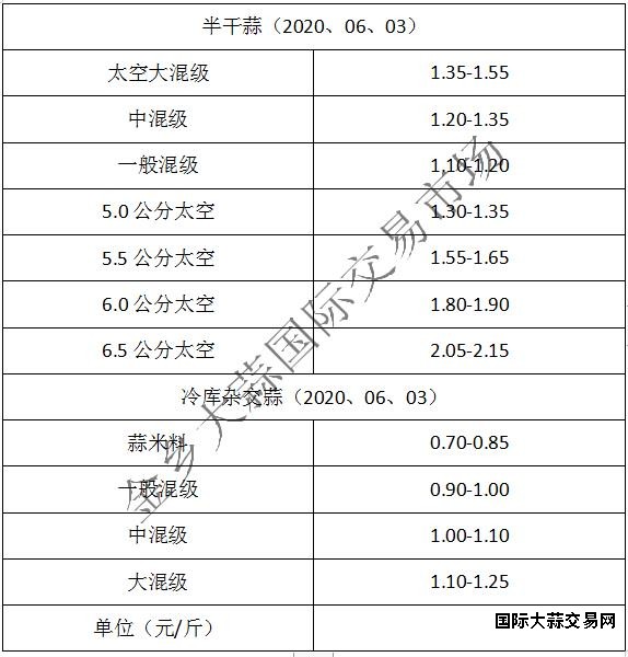 冷库蒜市场销售空间缩减,即将退出交易,当前开库销售的卖家零星,采购商多数转向新蒜采购,对冷库蒜关注度降低,购销难组织,交易不多,价格暂时维持。蒜米料:0.70-0.85元/斤,一般混级0.90-1.05元/斤,中混级1.00-1.10元/斤,大混级1.10-1.25元/斤。