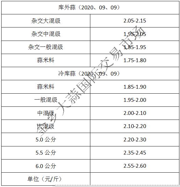 当前库外杂交大混级2.05-2.15元/斤,中混级1.95-2.05元/斤,一般混级1.85-1.95元/斤,蒜米料1.75-1.80元/斤,主流价格稳中显弱(不含极端价格)。
