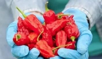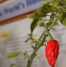 美国一位农夫花了十年时间,在南卡罗来纳州培育出一种超级辣椒——“卡罗来纳死神”。2013年11月,“卡罗来纳死神”被吉尼斯世界纪录确认为世界上最辣的辣椒。这种辣椒平均辣度达到220万单位,比警用辣椒喷雾的辣度还高。