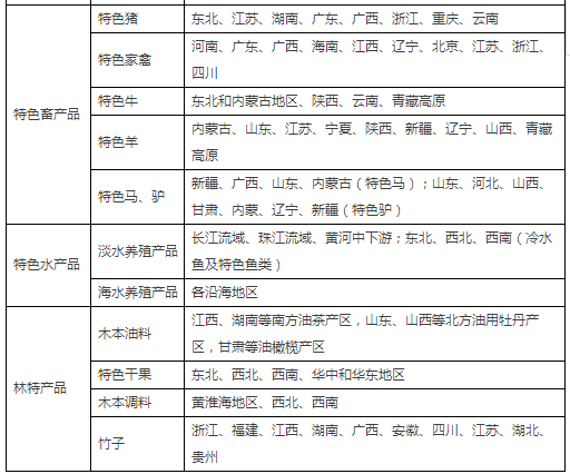 特色农产品优势区的品种(类)与重点区域