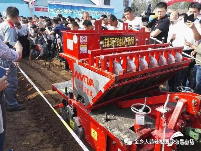 一台机器一天种50亩 相当于200工作量在济宁大蒜生产全程机械化示范基地,大蒜播种机、收获机、水肥一体机等20多台最新研制的农机集中亮相,现场演示了大蒜机械化播种、联合收获、高效植保、水肥管理等机械化技术。这台由山东农业大学、玛利亚机械农机企业等历时5年联合研制的智能大蒜精量播种机,在精量取种、均匀播种、弹性覆土智能监控等大蒜种植关键技术取得了突破,每天可播种大蒜50多亩,相当于200多个人的工作量。