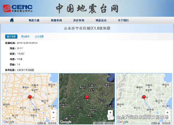 中国地震台近年来济宁地震记录:
