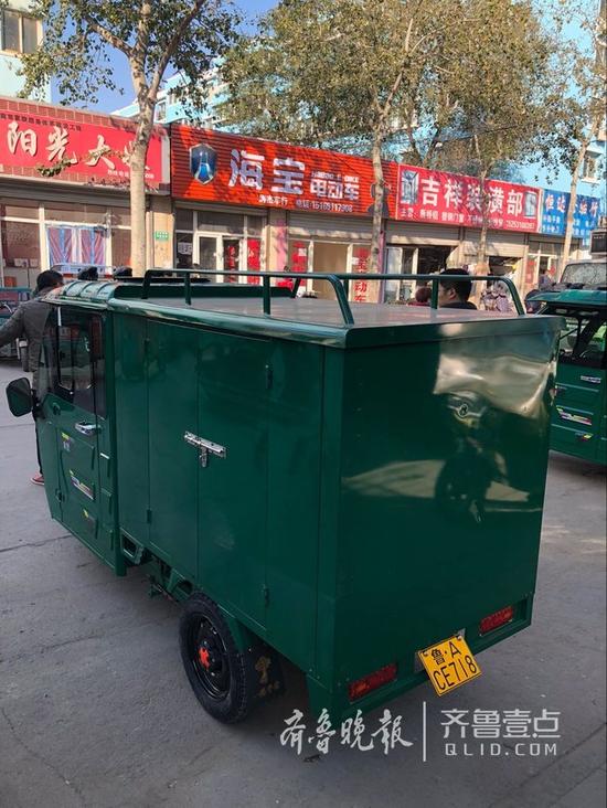 11日上午9点,虽然是个周末但时逢双十一购物节,天桥区联四路北头一个邮政营业点,工作人员依旧忙碌着。5辆摆在门口的厢式电动三轮车分外引人注意。